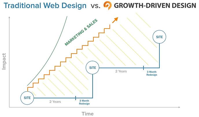 Các trang web lúc trước cần rất nhiều thời gian để lập kế hoạch và khởi chạy, chỉ để sau đó trang web tiếp tục không thay đổi gì cho đến khi nó trở nên lỗi thời một lần nữa trong vòng vài năm. Mô hình tiếp cận thúc đẩy tăng trưởng đánh bật quy trình xưa cũ bằng cách tiếp cận lặp đi lặp lại, lấy người dùng làm trung tâm, trọng dữ liệu để cải thiện trang web. Cách tiếp cận GDD yêu cầu phân tích thường xuyên về hành vi của người dùng trên trang web của bạn, nghĩa là thông báo về các mục cần cải thiện và cập nhật nhằm nâng cao trải nghiệm người dùng và hướng người dùng đến nội dung mà họ quan tâm nhất.