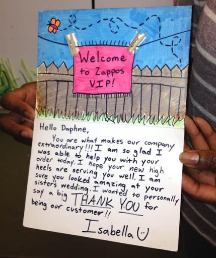 Trang thương mại điện tử quần áo và giày dép Zappos nổi tiếng với dịch vụ chăm sóc khách hàng tuyệt vời – bao gồm nỗ lực thể hiện sự quan tâm của khách hàng bằng cách nói cảm ơn và gửi quà.