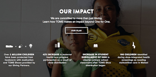 TOMS đã xây dựng toàn bộ mô hình kinh doanh của họ để làm cho thế giới trở nên tốt đẹp hơn. Như Jessica Weiss, người đóng góp cho Fast Company đã nói: