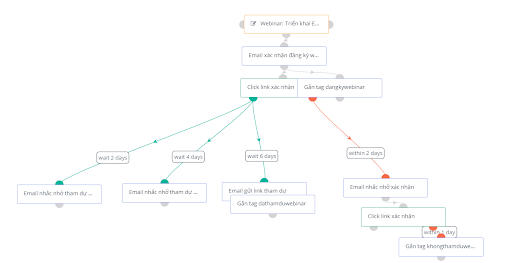 Giả sử bạn đang tự động hóa một chiến dịch email xác nhận và nhắc nhở những người đăng ký webinar của mình.