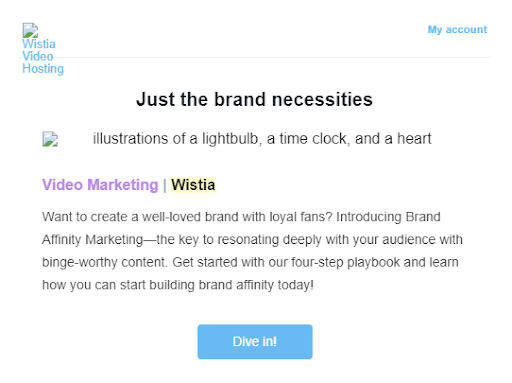 Công ty phần mềm video Wistia bao gồm văn bản thay thế dễ hiểu trong email để thúc đẩy khả năng tiếp cận.