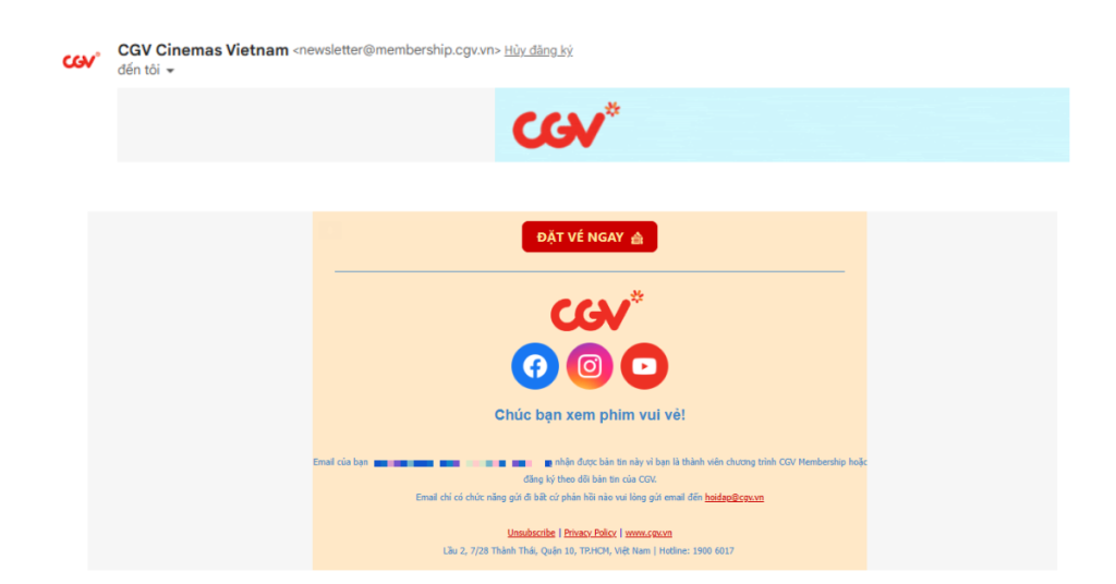 Ví dụ 2: Email từ CGV Cinemas Vietnam