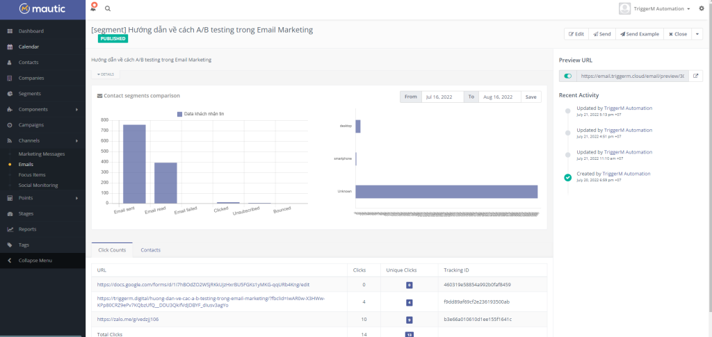 - Họ lấy tất cả dữ liệu cho các chỉ số mà họ tập trung vào, những chỉ số này thường được biểu thị bằng các chỉ số nhấp chuột (như tỷ lệ mở, CTR và tỷ lệ thoát).