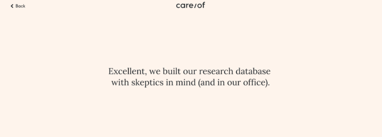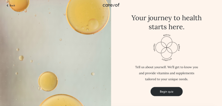 Care/Of là một công ty bán thực phẩm chức năng bán vitamin, protein và collagen cho khách hàng của họ. Họ sử dụng phễu câu hỏi của mình để phân khúc khách truy cập vào trang web dựa trên sở thích của họ.
