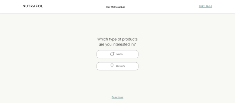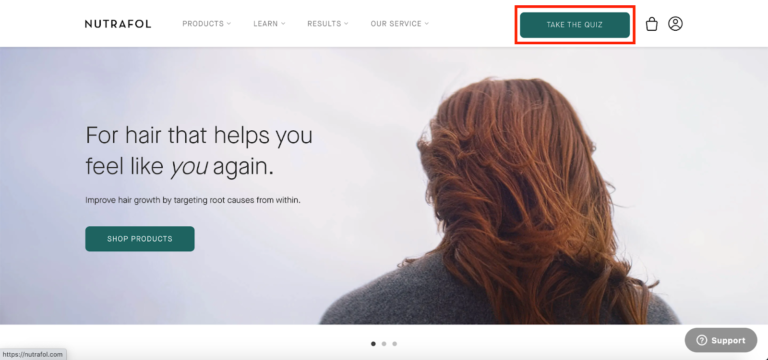 Nutrafol, một công ty cung cấp các sản phẩm chăm sóc tóc, đưa ra một ví dụ điển hình. Họ đã tạo ra một “câu đố về sức khỏe của tóc”. Bất kỳ ai truy cập trang web đều có thể truy cập bài kiểm tra bằng cách nhấp vào nút button trên menu.