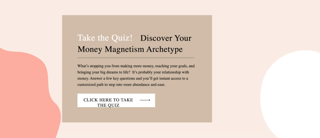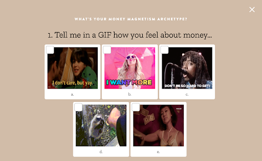 Một ví dụ điển hình về một blogger nổi tiếng sử dụng phễu câu hỏi để thu hút khách hàng tiềm năng vào danh sách email của họ là Melyssa Griffin. Phễu câu hỏi của cô ấy giúp độc giả khám phá “Hình mẫu (cách thức) của việc thu hút tiền tài.