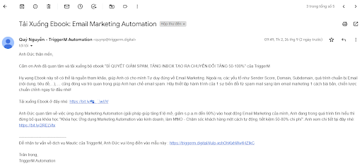 (Hình ảnh 7: Nội dung Email được cá nhân hóa và gửi tặng một ebook cho tệp data)