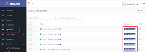 (Hình ảnh 4: Chức năng Segment trên Mautic giúp phân đoạn data)