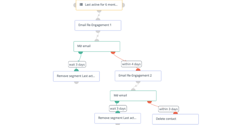 Mỗi địa chỉ email không hoạt động sẽ nhận được một Re-Engagement Email và nếu họ mở email đó thì đó là sự thành công của bạn và họ không còn bị coi là không hoạt động nữa. Tuy nhiên, những người không mở email sẽ bị xóa khỏi danh sách.