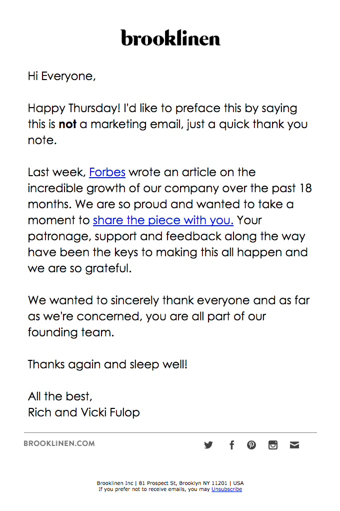 Đây là một ví dụ tuyệt vời về việc sử dụng email cảm ơn để thu hút lại người đăng ký.