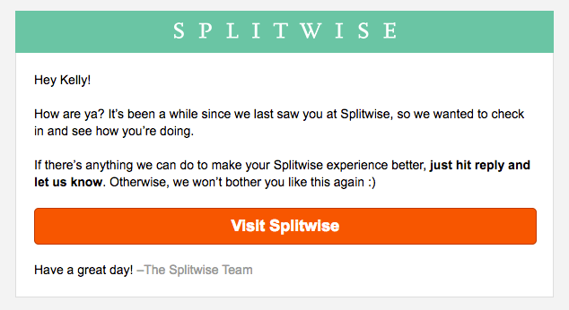 Thông điệp tái tương tác này từ Splitwise rất tối giản và dễ nhìn.