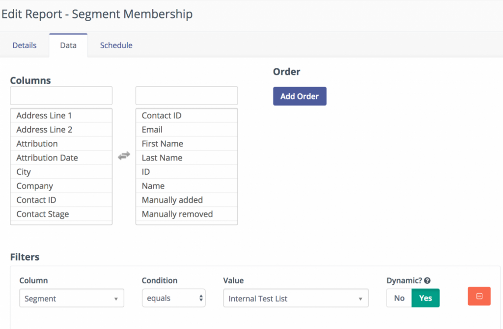 Báo cáo này sẽ hiển thị tất cả các liên hệ đã được thêm vào một phân khúc và cách chúng được thêm hoặc xóa khỏi một phân khúc. Để tạo báo cáo, hãy làm theo các hướng dẫn bên dưới: