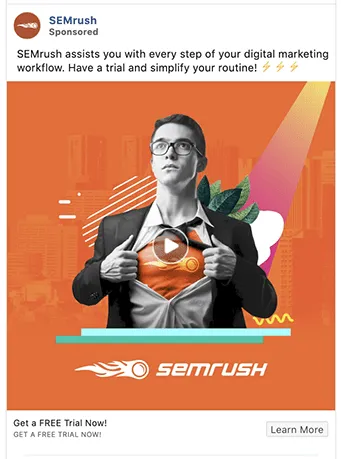 Quảng cáo Facebook này của SEMRush nhắm mục tiêu các chuyên gia SEO bằng cách sử dụng thuộc tính nghề nghiệp.