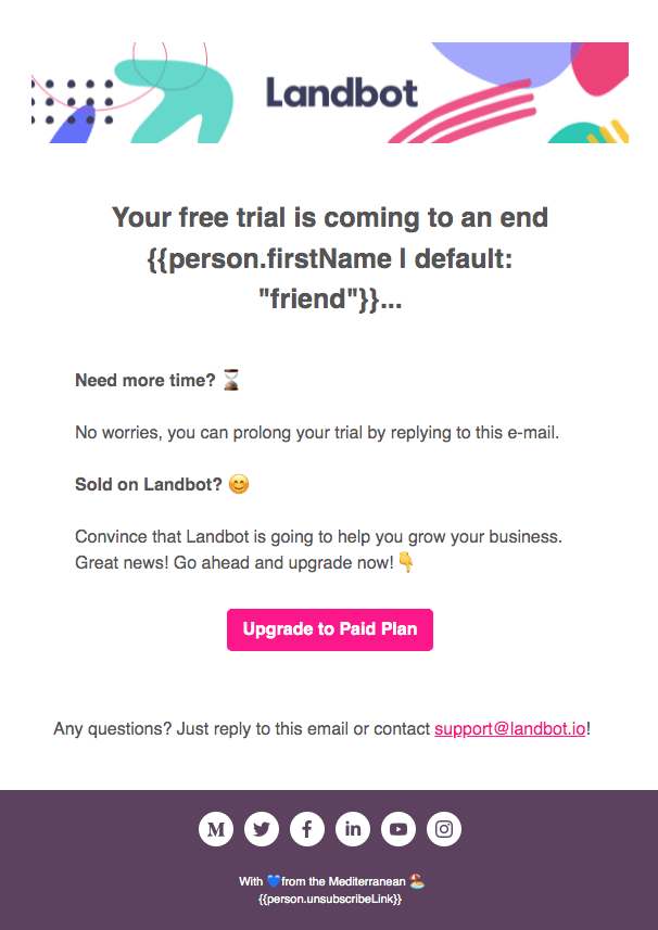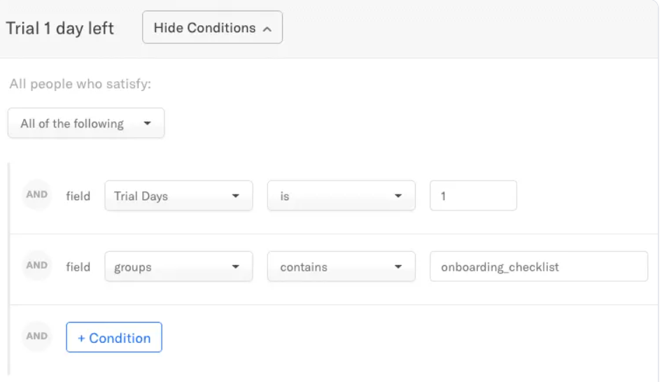 Ví dụ: trình tạo chatbot phổ biến Landbot đã tạo một phân khúc gồm tất cả người dùng vào ngày cuối cùng của thời gian dùng thử: