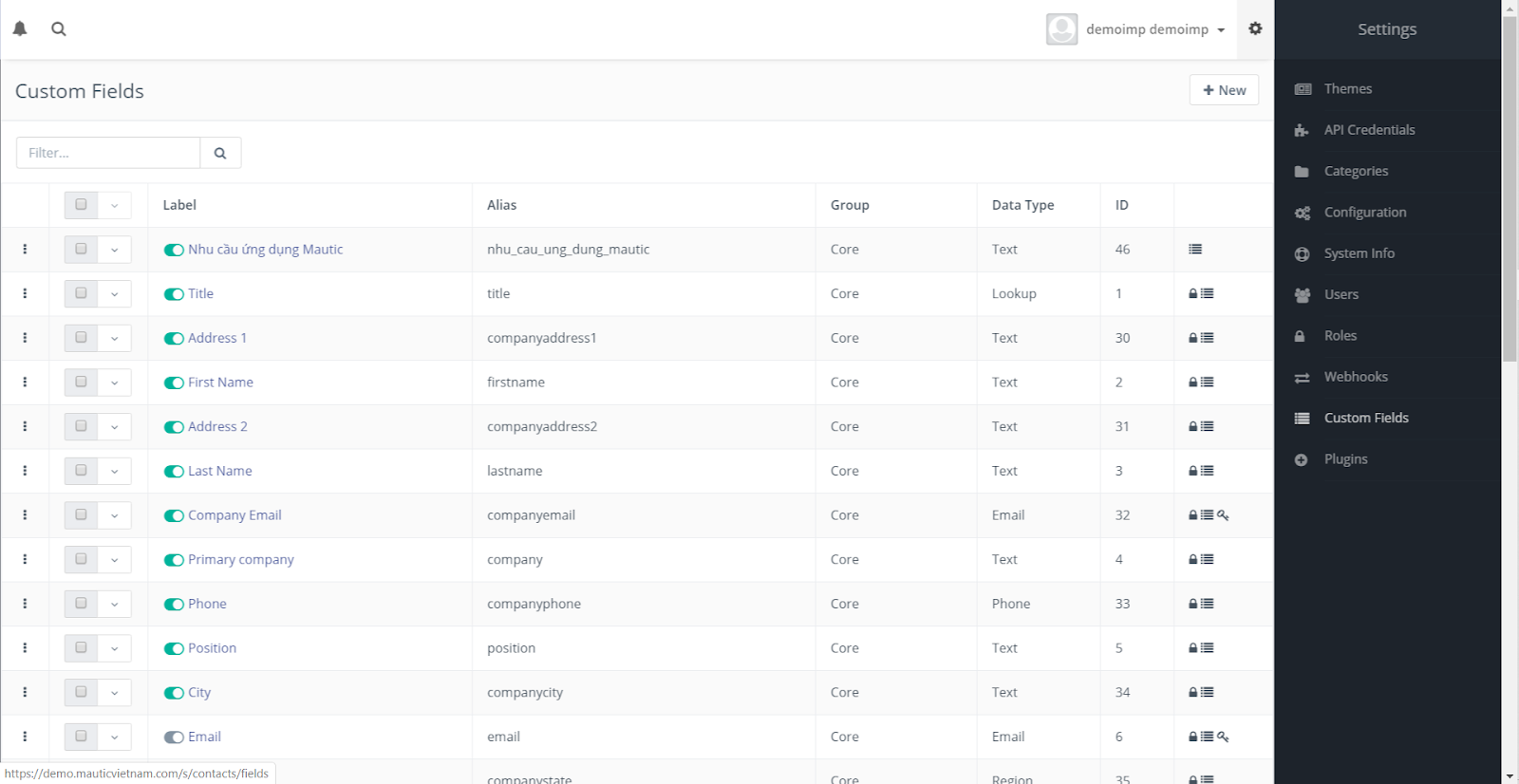 Mautic không có giới hạn các trường thông tin của Data, ví dụ khi bạn import từ excel và có những trường trong Mautic không có thì bạn có thể tạo thêm các trường cho Mautic bằng cách vào Custom Fields để tạo thêm các Field mới và Matching các Fields này với các trường có trong Excel.