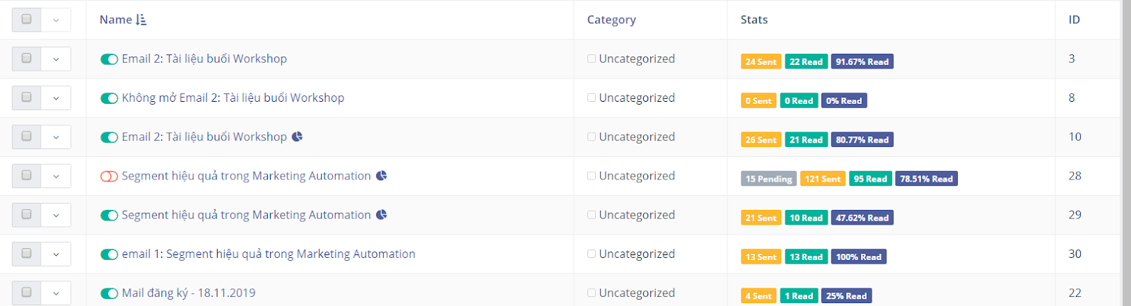 Dựa vào Segment tĩnh, bạn có thể gửi Email tới tệp đó, ví dụ như thông tin khuyến mãi, mã giảm giá,… Việc này tương đồng như bạn up list data lên Mailchimp hay Getrespone để gửi mail.