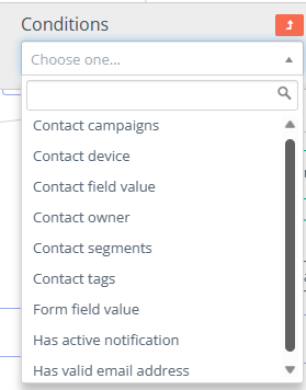 Send web notification (Gửi thông báo web): Gửi contact một thông báo web. Xuất hiện khi tích hợp với nhà cung cấp thông báo web, chẳng hạn như plugin OneSignal, được bật.