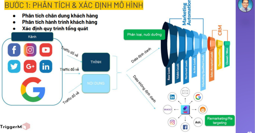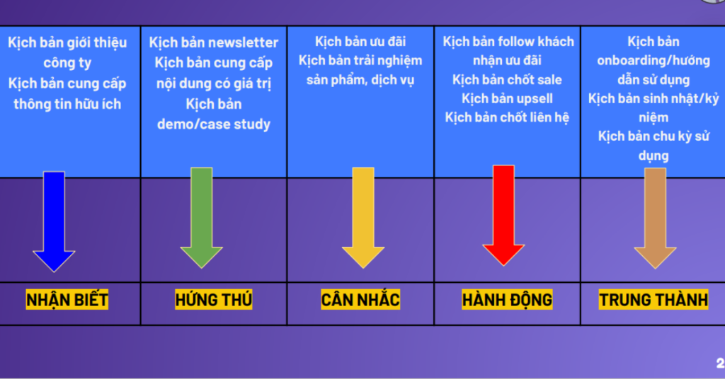 Bước 1 đã được giải thích chi tiết ở phần Inbound Marketing (xem lại tại đây). Thông qua những form, popup, linklocker, khảo sát,… đưa contact vào hệ thống Marketing Automation. Tiếp đến là phân loại lead (lọc) (xem lại tại đây). Tùy từng nhóm phân loại sẽ có kịch bản riêng.