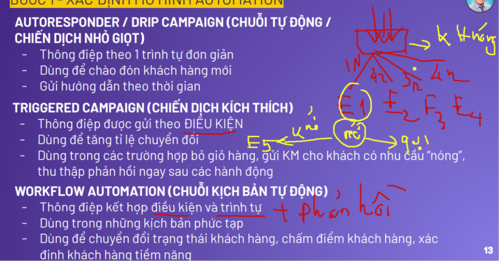 Nếu bạn chỉ gửi đi những email đơn giản thì tính hiệu quả sẽ không cao. Thay vào đó, bạn có thể thiết lập những kịch bản tự động, email, tin nhắn (Messenger, SMS) để có thể đáp ứng các mục tiêu: tiếp cận và xây dựng mối quan hệ với khách hàng đúng thời điểm và kịp thời. Dưới đây là Recap buổi 5 và 6 về Chuỗi Workflow Automation Và Kết Nối Nền Tảng No Code trong Khóa Học Training Email Marketing Workflow Nâng cao T12.2022.
