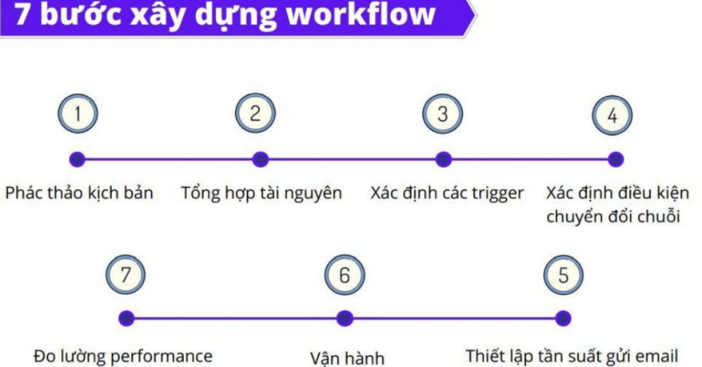 Chuỗi email cần thiết lập workflow, có thể vẽ ra trên giấy hoặc bằng công cụ vẽ sơ đồ như Google jamboard.