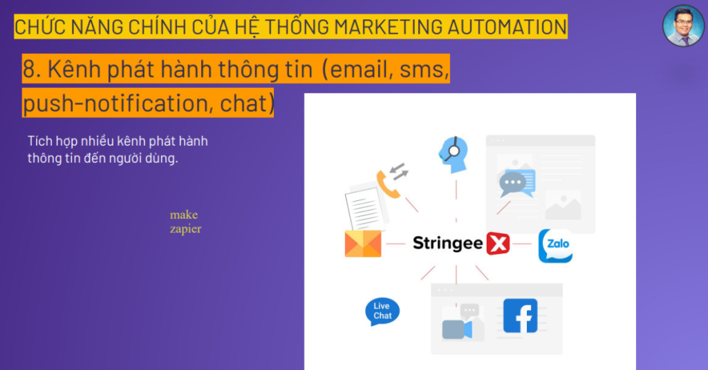Triển khai Marketing Automation thường sử dụng kênh email là chính, những kênh khác như SMS, chatbox…thì dùng MAKE.com hoặc Zapier.