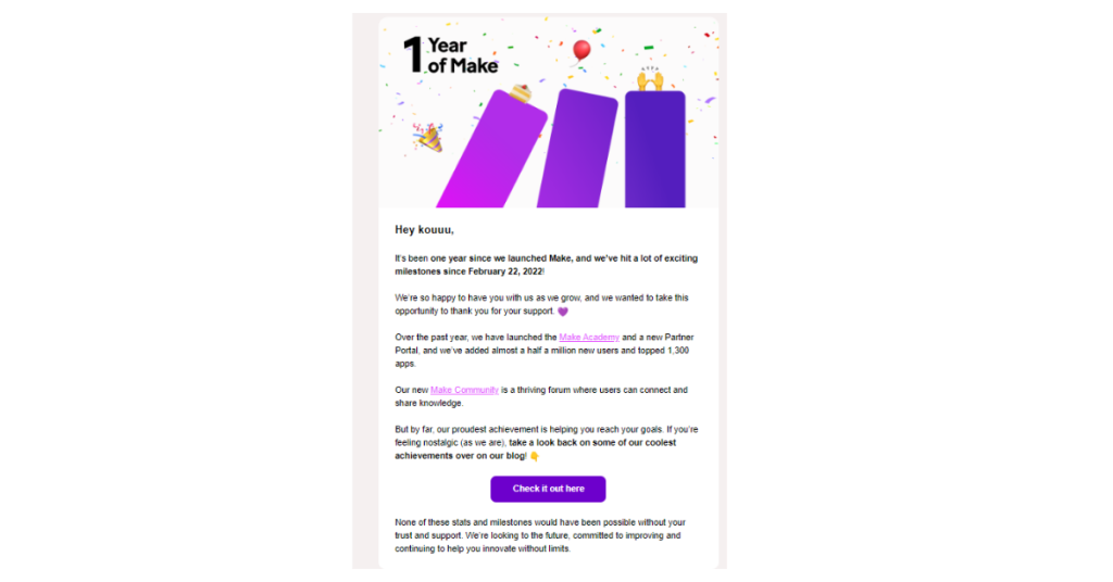 Giao diện đơn giản và trực quan: Sử dụng giao diện đơn giản giúp người nhận dễ dàng tập trung vào nội dung chính của email. Tránh sự quá tải với quá nhiều hình ảnh, màu sắc chói lóa và các yếu tố phức tạp. Sử dụng hệ thống màu sắc hài hòa và tương phản, đồng thời sử dụng khoảng trắng để tạo không gian giữa các phần để email trở nên trực quan và dễ đọc. Càng đơn giản càng dễ vào hộp thư đến.